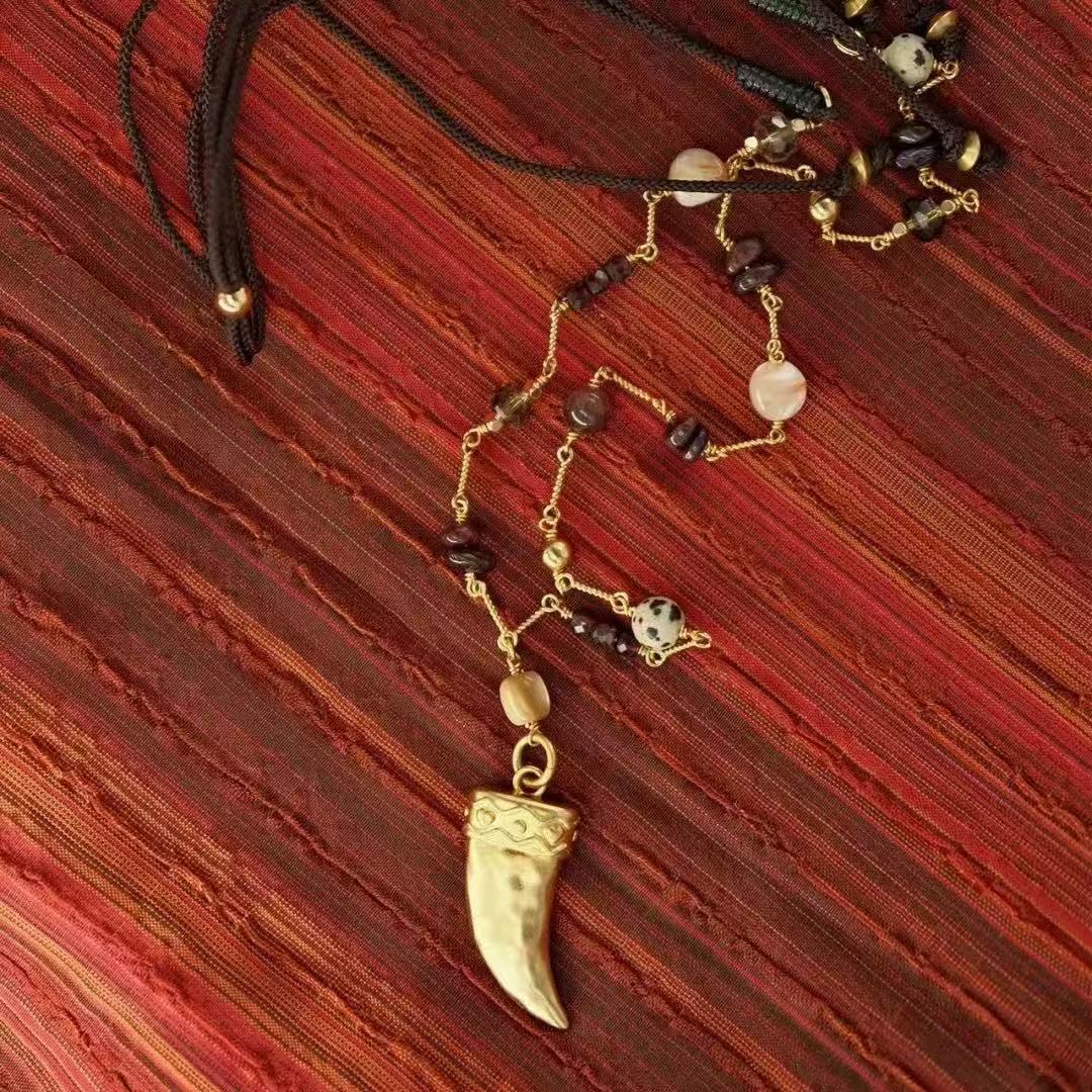 Wild Pig tooth necklace original ecological ethnic style film and television props original tribe unique wild domineering