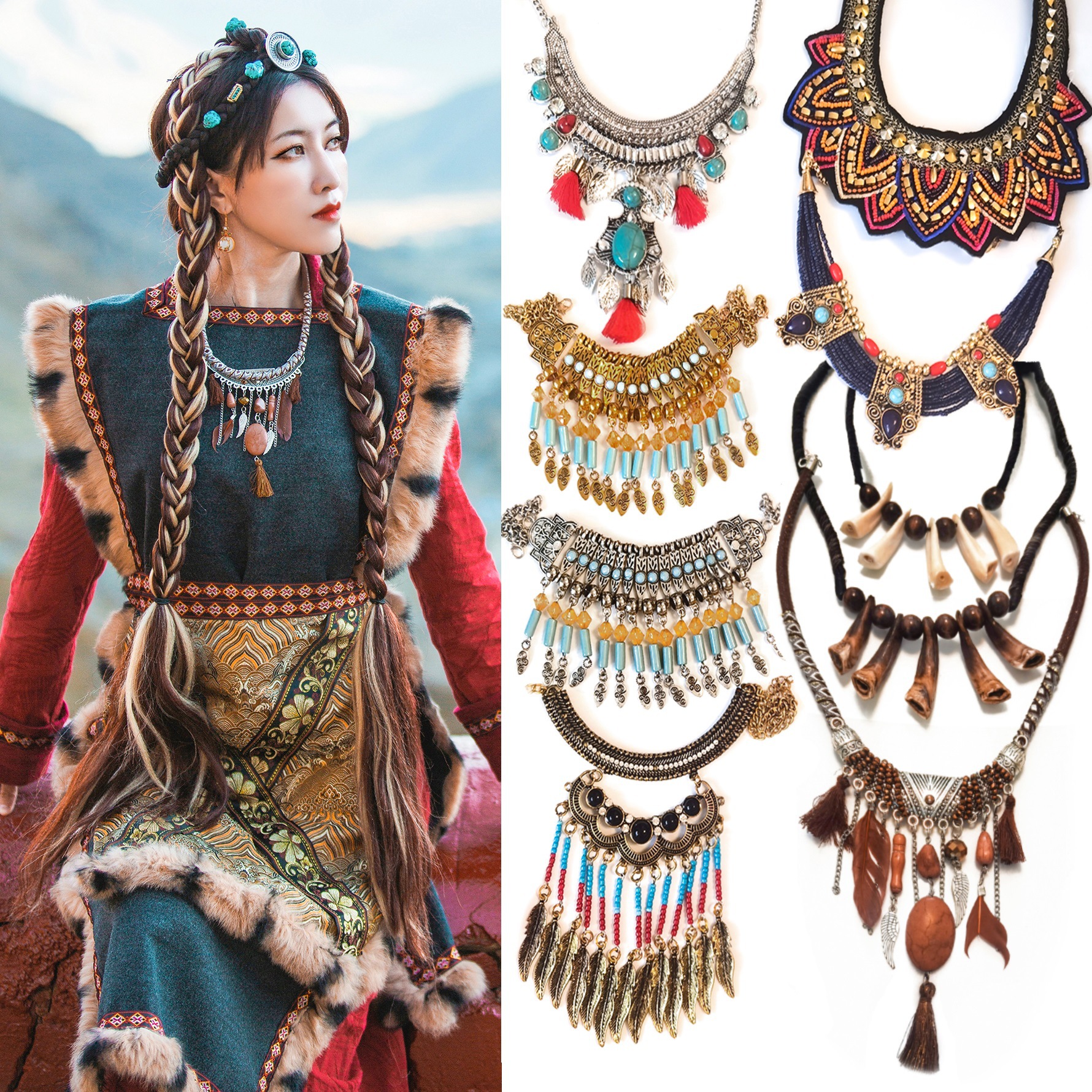 Short Clavicle Necklace Choker Collar Ethnic Style Xizang Xizang Retro Gold and Silver Photo Travel Women