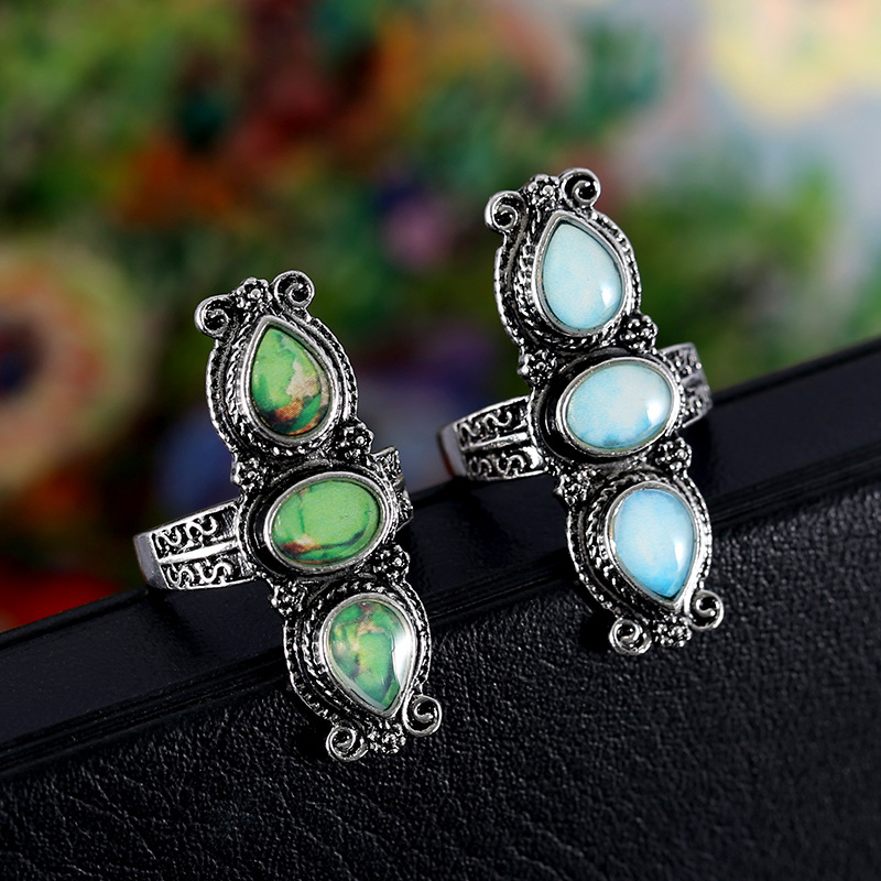 Lan Jing Amazon New Jewelry Simple Retro Natural Gemstone Turquoise Women's Wedding Engagement Ring
