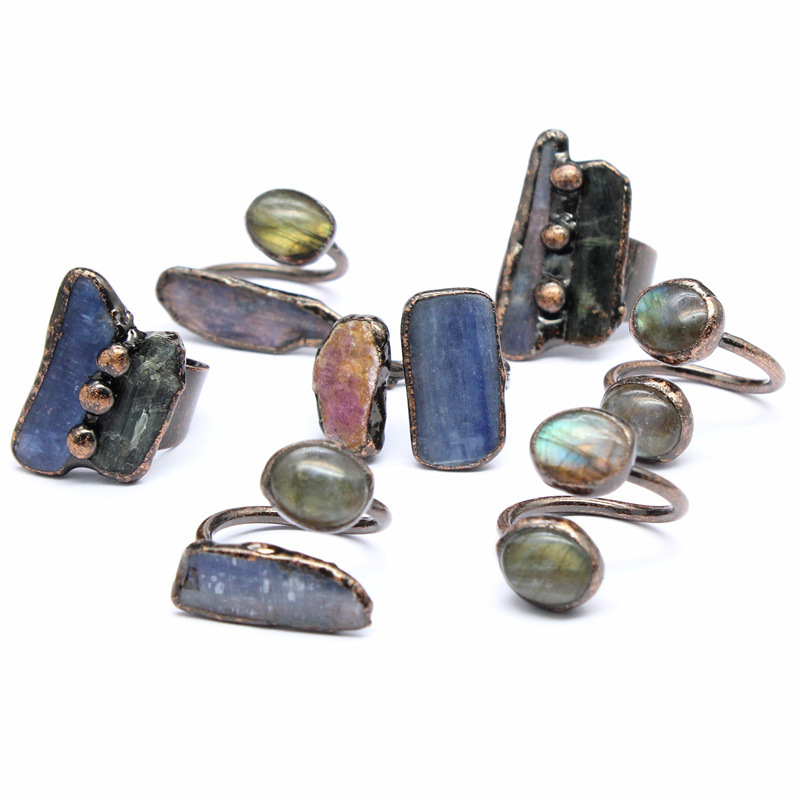 Natural stone retro personalized lonely Crystal raw stone ring Ruby open ring cross-border jewelry wholesale