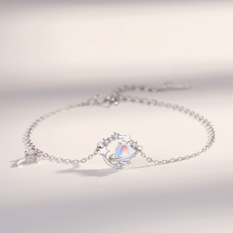 Planet Bracelet for Women 925 Sterling Silver Korean Style Fresh Ins Moonstone Geometric Niche Design Bracelet Wholesale