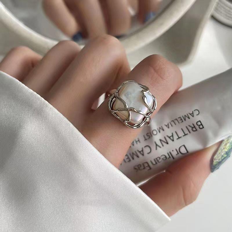 ins Moonlight Forest Thai Silver Ring Women's Pearl Niche Ring Internet Celebrity Cold Style Advanced Student Alloy Jewelry
