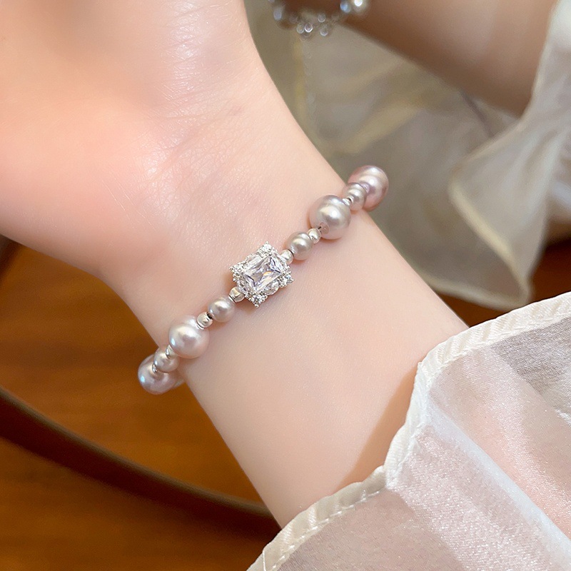 Square Zircon Shijia Bead Manta Beaded Bracelet French Retro Color-Preserving Light Luxury Elegant High-End Square Diamond Bracelet