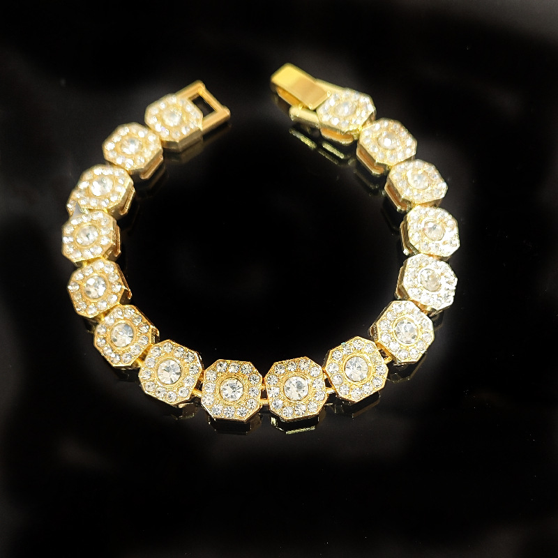 New Eco-friendly Zinc Alloy Octagonal Cuban Chain Gold Chain Full Diamond Hiphop Rap Hip Hop Necklace