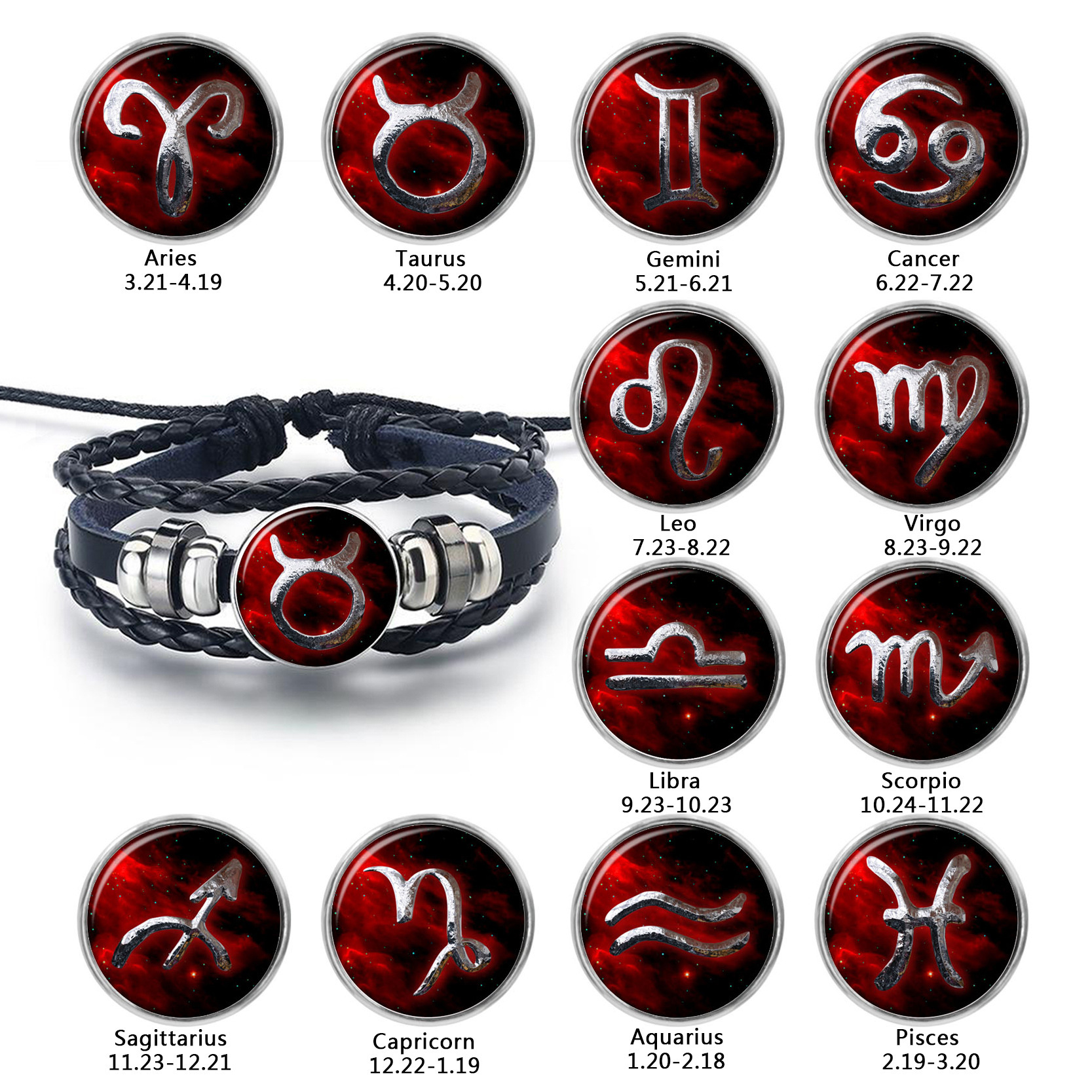 12 constellation Time gem leather bracelet hand-woven beaded bracelet cross-border hot jewelry Souvenir Wholesale
