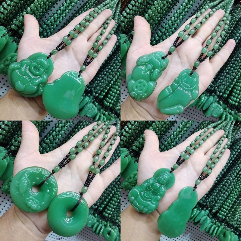 375 Necklace Sweater Chain Green Glass Imitation Jade Ethnic Style Retro Buddha Guanyin Cicada Long 108 Beads
