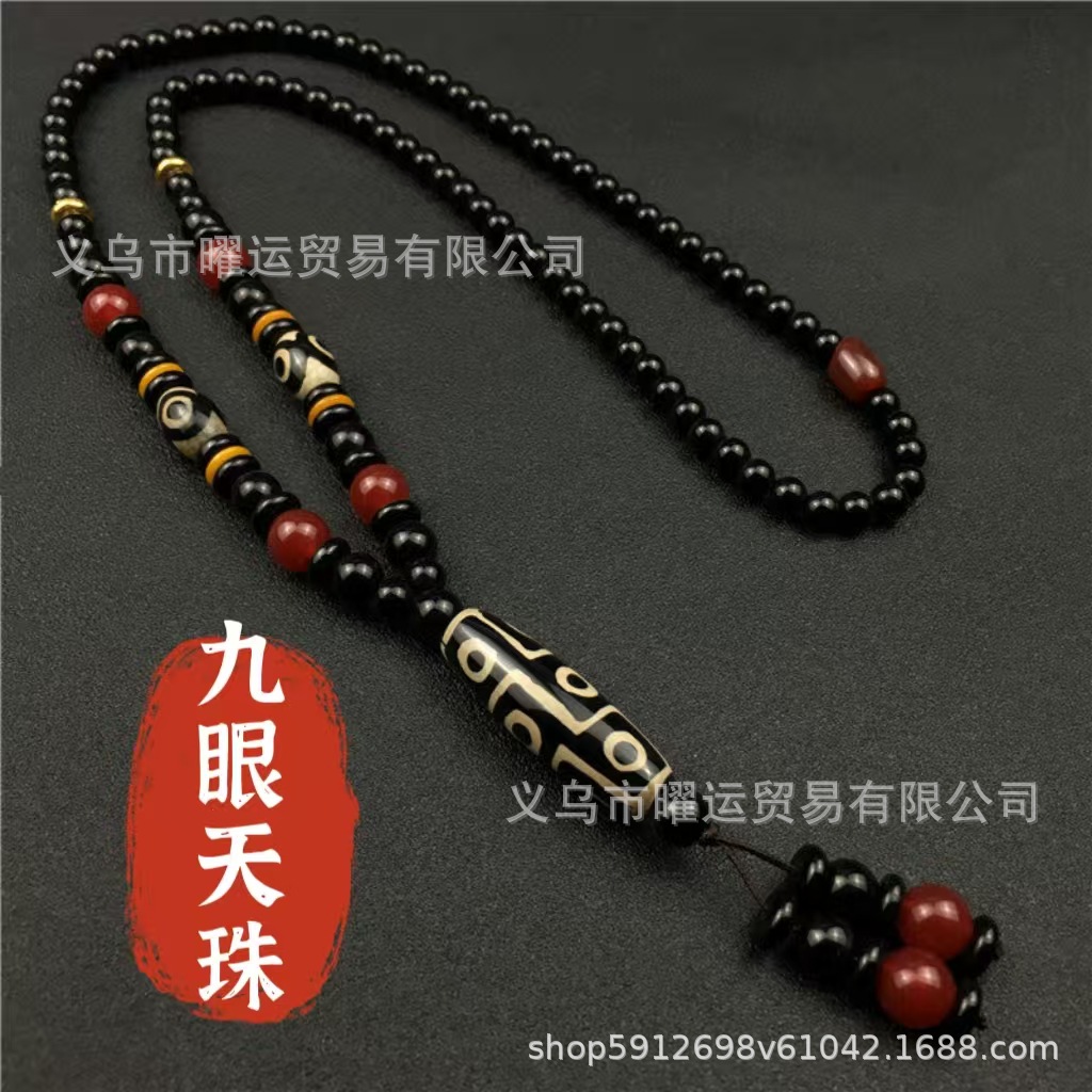 Natural Agate Nine-Eyed Dzi Bead Necklace Xizang Agate Sweater Chain Retro Ethnic Style Dzi Bead Necklace Gift Wholesale