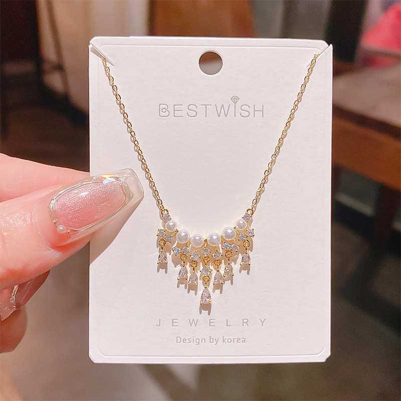 2025 Pearl Gypsophila Zircon Waterfall Water Drop Tassel Necklace Exquisite Light Luxury Style Design Clavicle Necklace