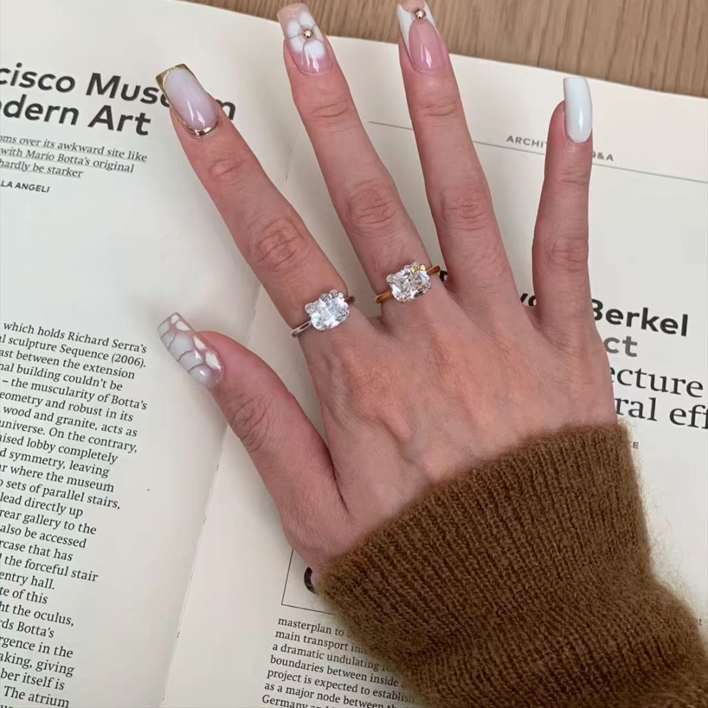 Three Horizontal Iris Flower Square Ring Women's Opening Adjustable Retro Light Luxury Maillard Jewelry Niche Ring Wholesale