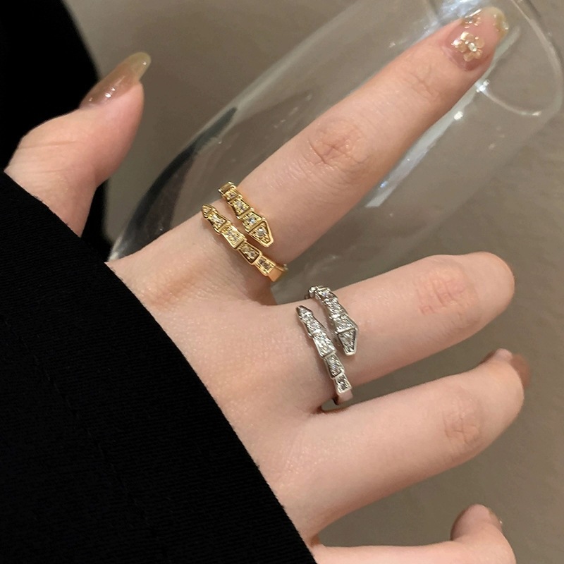 Fashion Commuter Flash Diamond Snake Ring Women's Ins Style Light Luxury Niche Opening Ring Simple All-match Accessories