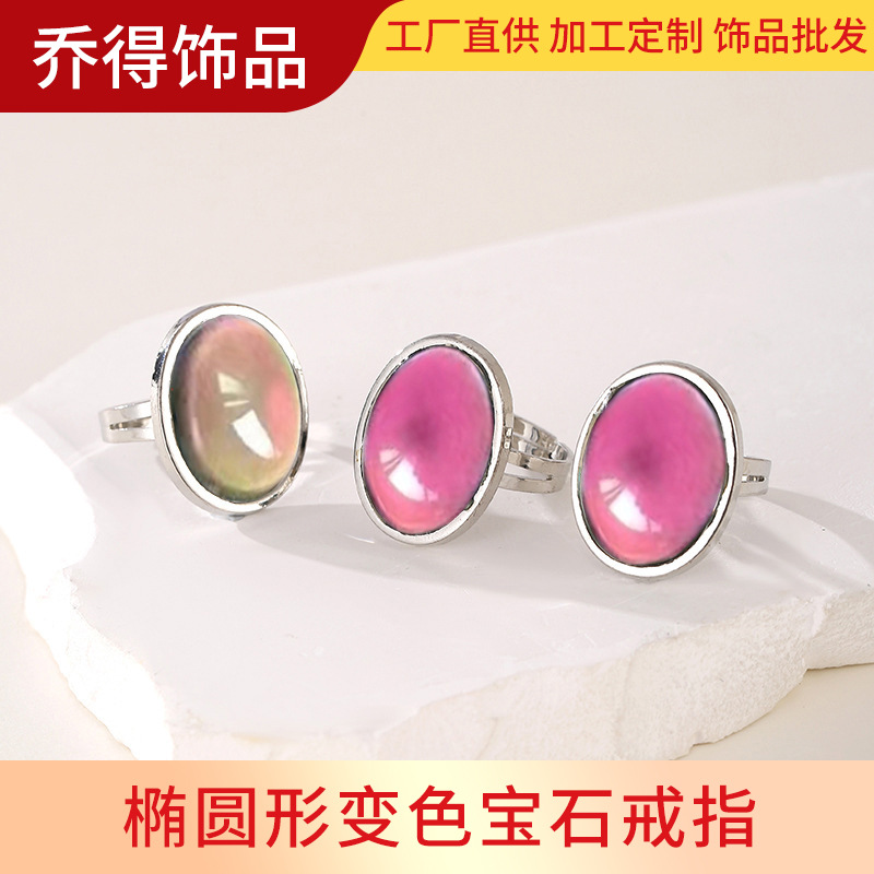 New Temperature-Sensitive Color-Changing Ring Accessories Environmentally Friendly Color-Changing Ring Oval Temperature-Changing Stone Opening Adjustable Ring