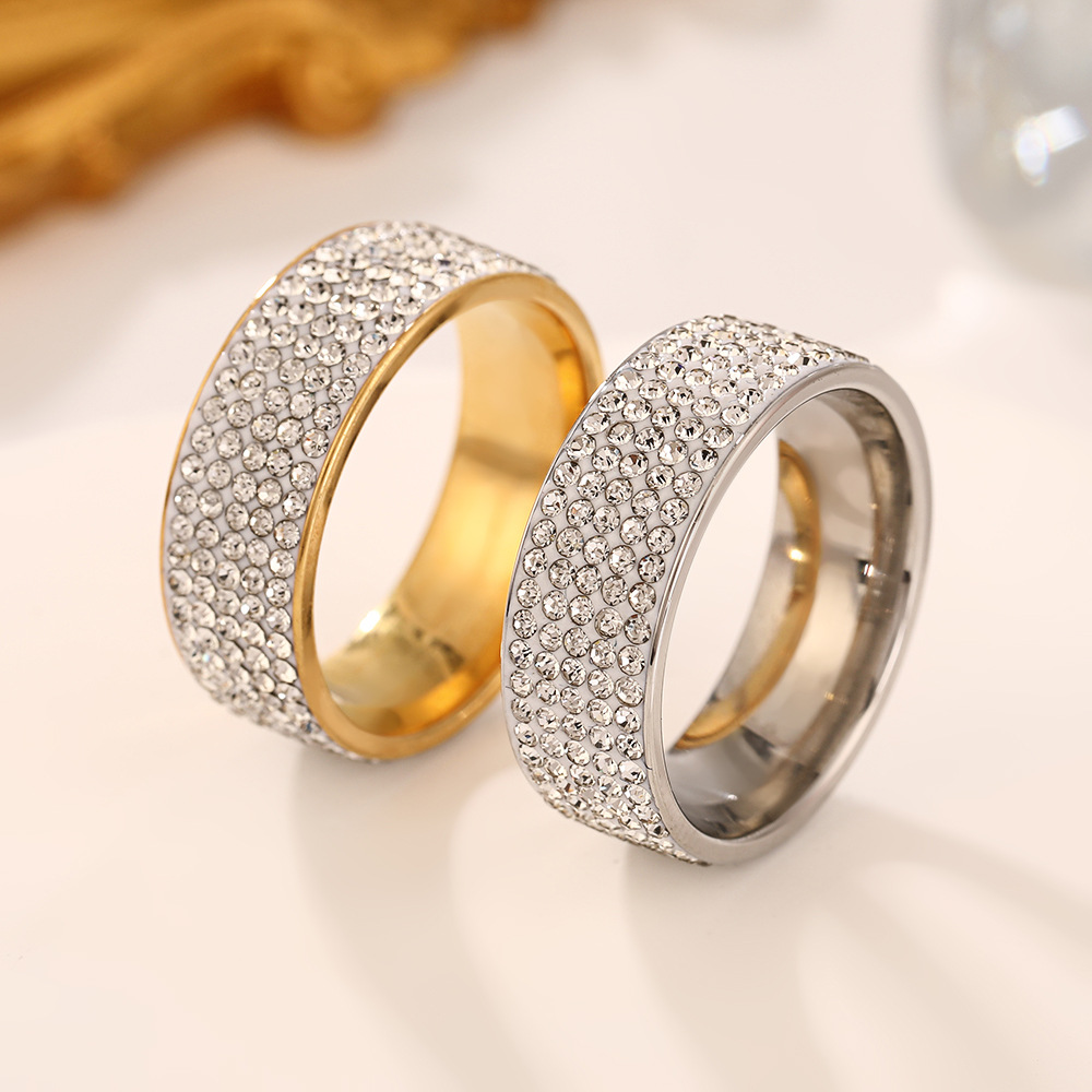 Factory Direct Sales European and American Cross-Border Five-Row Mud Diamond Stainless Steel Ring Fashion Couple Ring Foreign Trade Popular Hand Jewelry