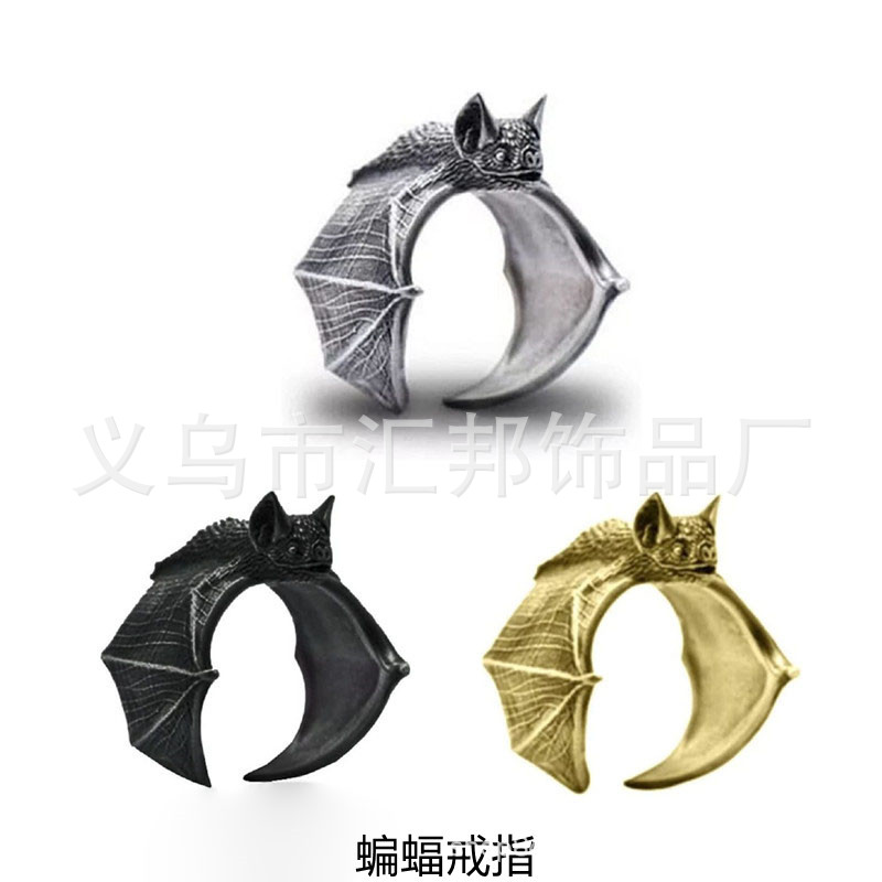 Retro Halloween bat finger ring Gothic cosplay stackable open adjustable punk wing ring
