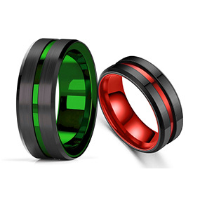 Jiabei Jewelry Ready Supply European and American Fashion Stylish Two-Color Black Red Black Green Groove Stainless Steel Ring Jewelry