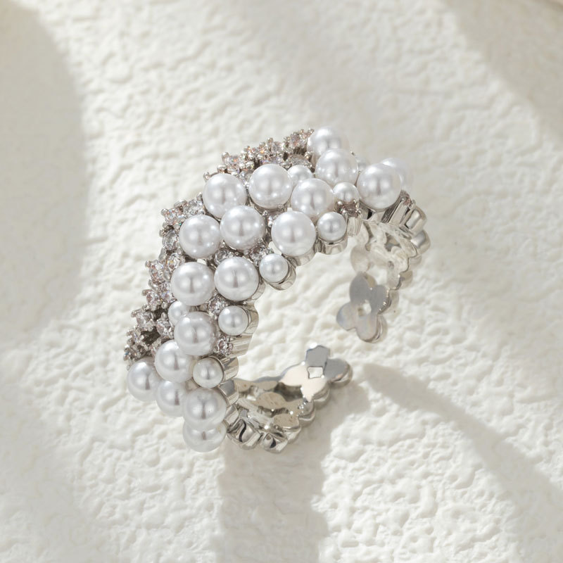 New High-grade Pearl Zircon Open Ring Retro Elegant Unique Finger Ring Adjustable Exquisite Ring