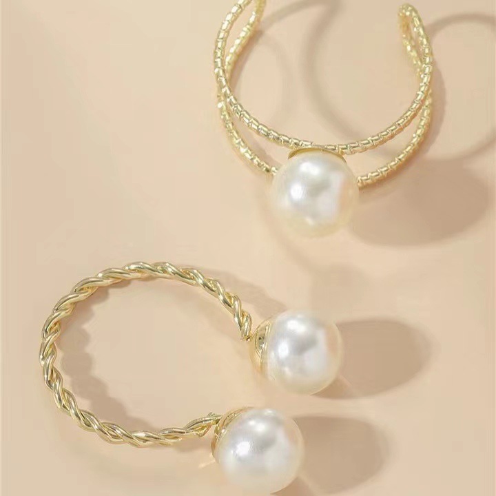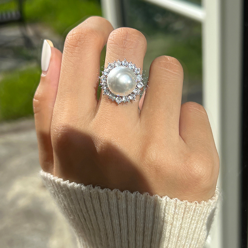 European and American French Baroque Imitation Pearl Ring Women's Niche Exaggerated Open Finger Ring Retro Flowers Metal Rings