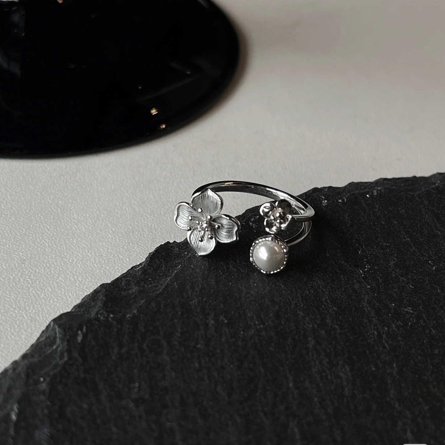 Niche Design Pearl Flower Ring New Chinese Style National Style Flower Ring Temperament All-match High-end Open Ring