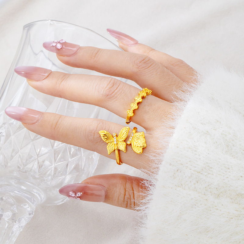 Fine Sand Gold Opening Adjustable Frosted Ring Women's Fashion Sweet Light Luxury Niche Exquisite Ring Ancient Design