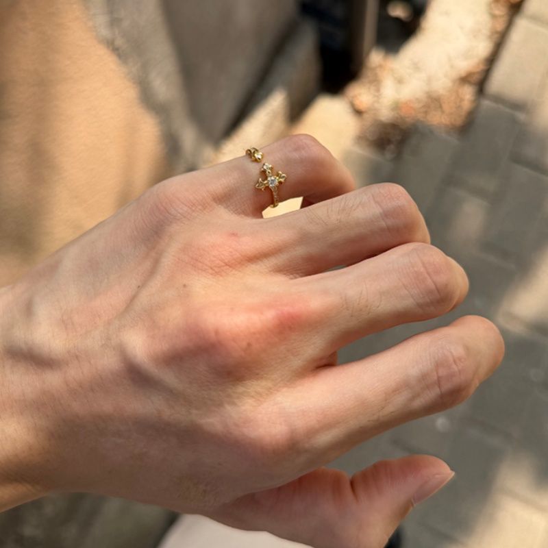 Iris Cross Zircon Diamond Ring for Men and Women, Versatile Ins Accessible Luxury Niche Little Thumb Tail Ring [Tail Ring Version]