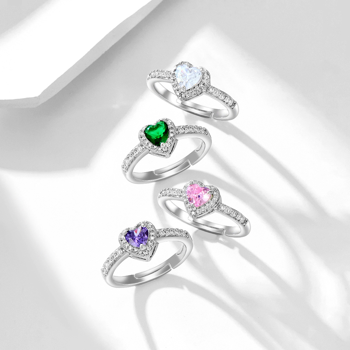 European and American New Style Trendy Copper Rings Fashion Colorful Zircon Small Heart Rings Jewelry Factory Direct Sale