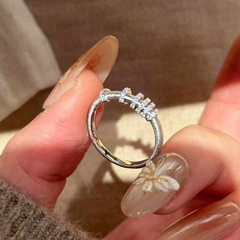 S925 Sterling Silver Ring, Accessible Luxury Niche, High-End, Cold Style Brushed Opening Design, Retro Non-Fading Ring Trend