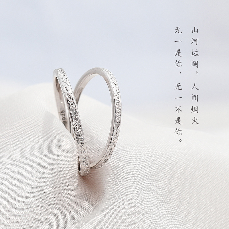 Stone Pattern Couple Rings for Men and Women, Fashionable and Simple Ins Style Niche Design, Elegant Opening and Adjustable
