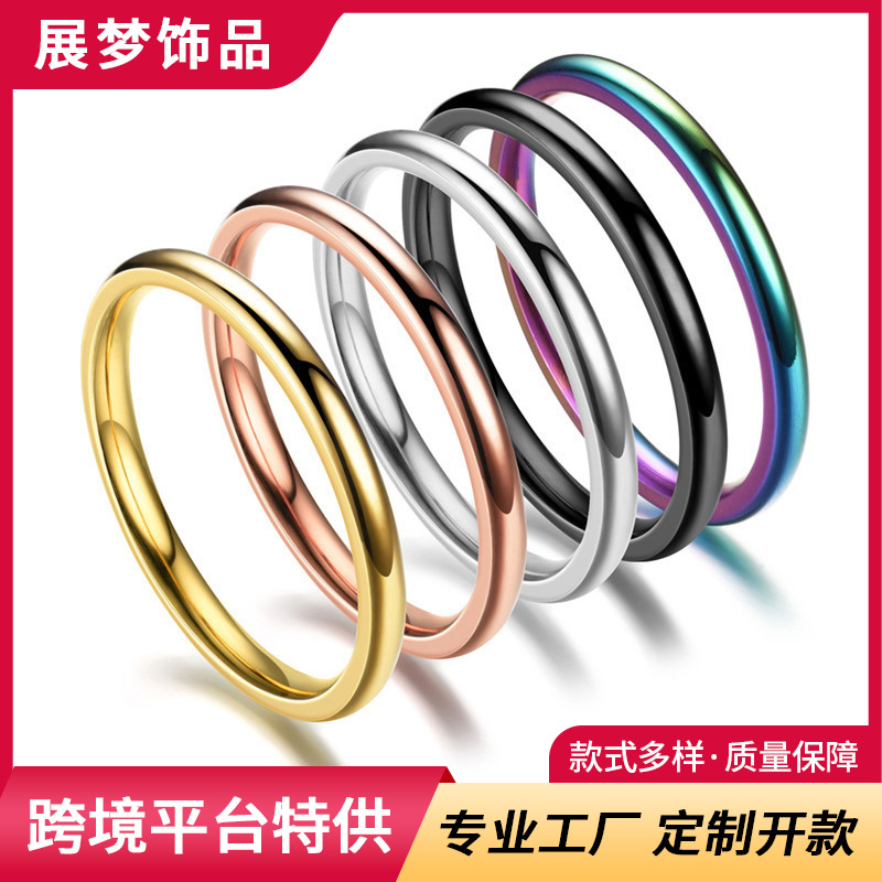 Cross-border Titanium Steel 2mm Ring Women's Korean Niche Ring Internet Celebrant Hot Selling European and American Stainless Steel Couple Ring