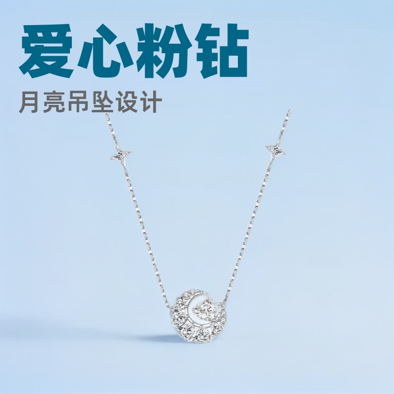 Little Red Book Same Style Dream Heart Moon Necklace Star and Moon Light Luxury Niche Design Pendant High-End Heart Clavicle Chain