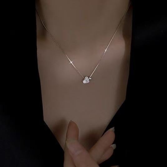 New Double Love-Shaped Necklace for Women with Sparkling Diamonds, Light Luxury, Simple, with Diamonds, Sweet and Niche Clavicle Chain for Girlfriend Wholesale