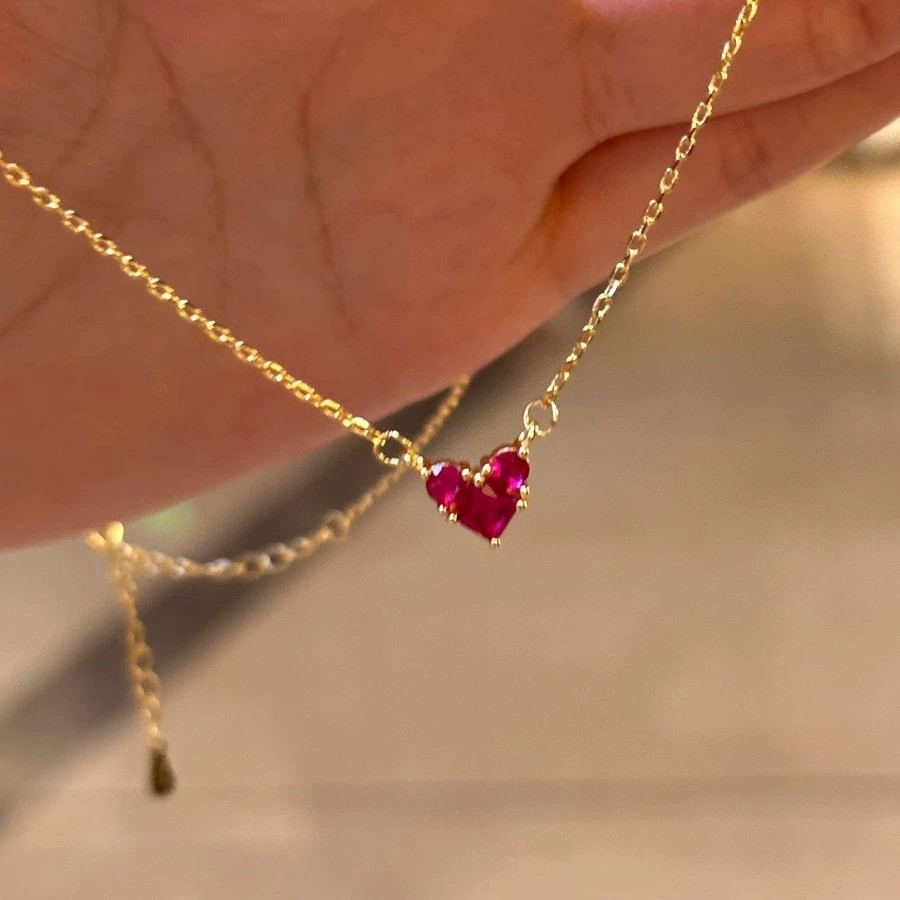 New Style Little Red Heart Necklace Feminine Style Light Luxury High-Level Niche Design Simple All-Match Collarbone Chain Valentine's Day Gift