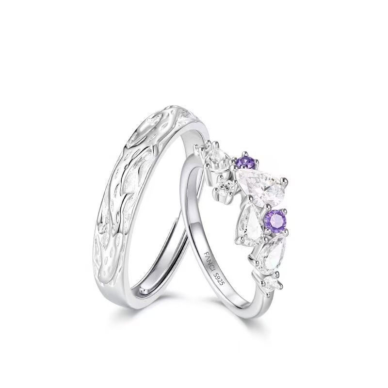 Fanjia White Copper with Logo [Wisteria Flower Series] Wisteria Mutual Respect Ring Light Luxury Fashion Niche 520 Gift