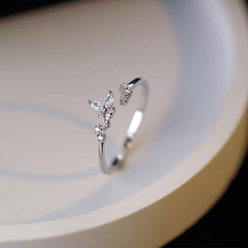 Tender Bud Butterfly Ring for Women, Ins Style Niche Design, Light Luxury, Simple Student Fresh Forest Style, Adjustable Opening