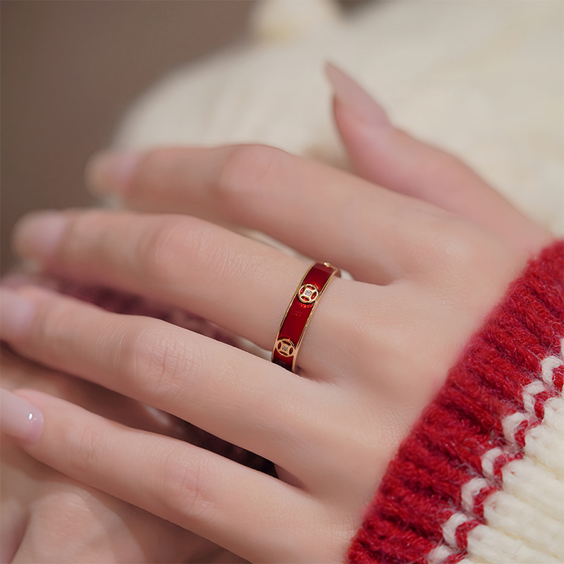 18K Real Gold Electroplated Oil-Drip Zirconia Open Ring, Light Luxury High-End Ring, New Chinese Style Niche Jewelry