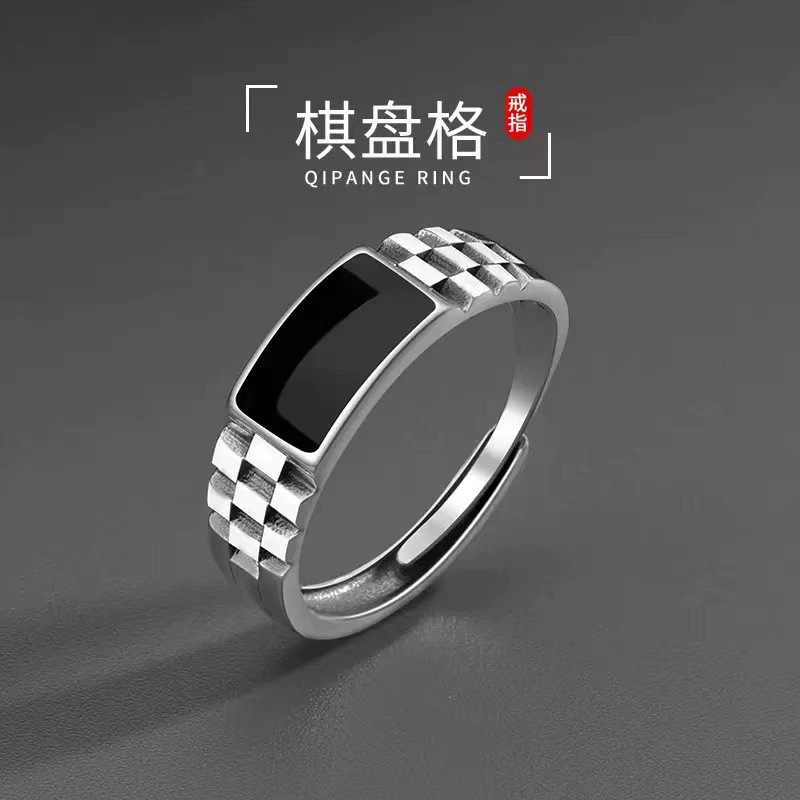 New Chessboard Pad Ring Men's Trendy Brand All-match Personalized Retro High-end Glue Dropping Single Ring Open Men's Ring