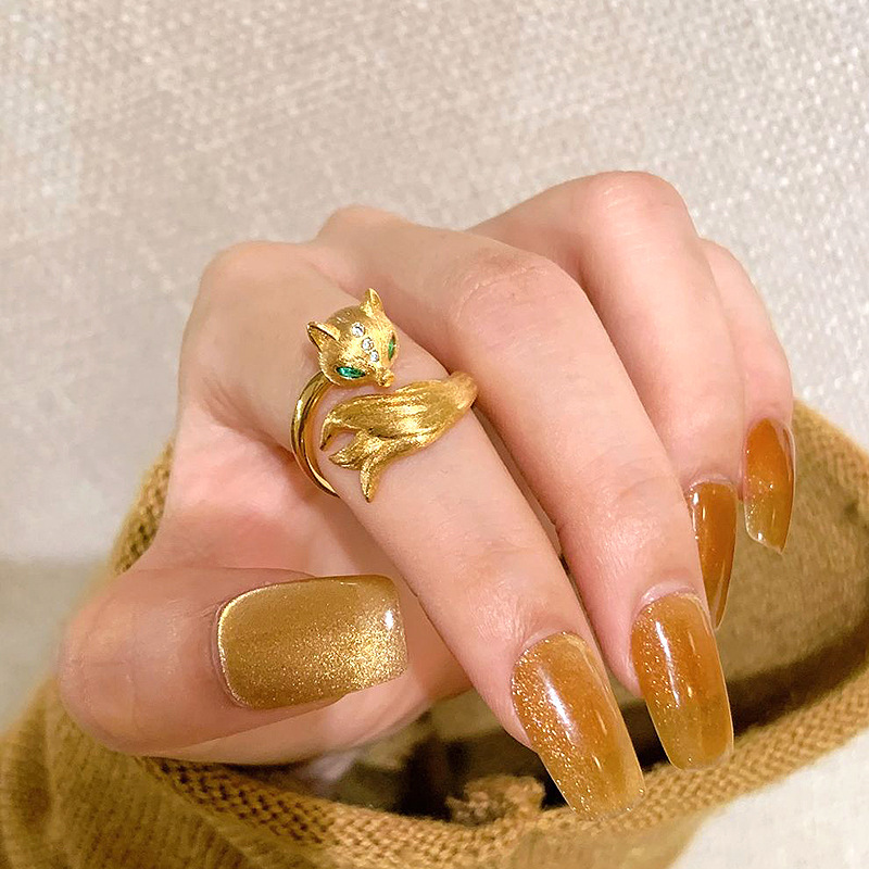 Nine Tail Spirit Fox ~ Retro Gold Brushed Fox Ring Mori Niche Trendy Light Luxury High-grade Finger Ring