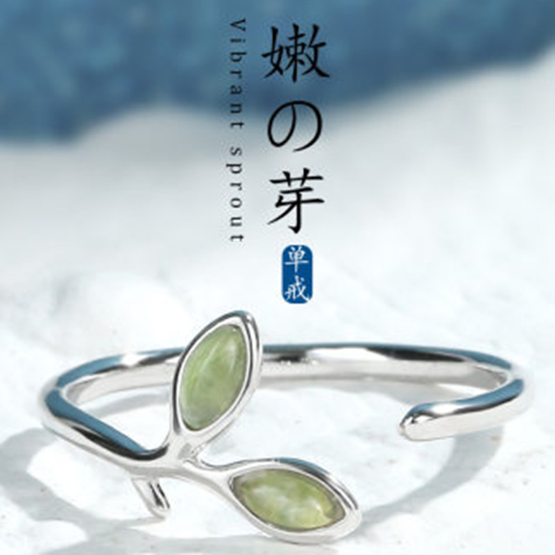 Leaf-Shaped Cat's Eye Stone Ring for Women, Adjustable Open Ring, Ins-Style, Cross-Border, Niche, High-End Design, Index Finger Ring