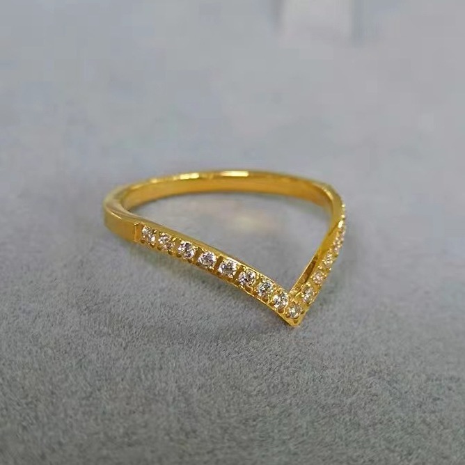 Factory Direct Sales Simple V-Shaped Titanium Steel Diamond Ring Women's Niche High-End Elegant Fashion Ring Zircon Row of Diamonds