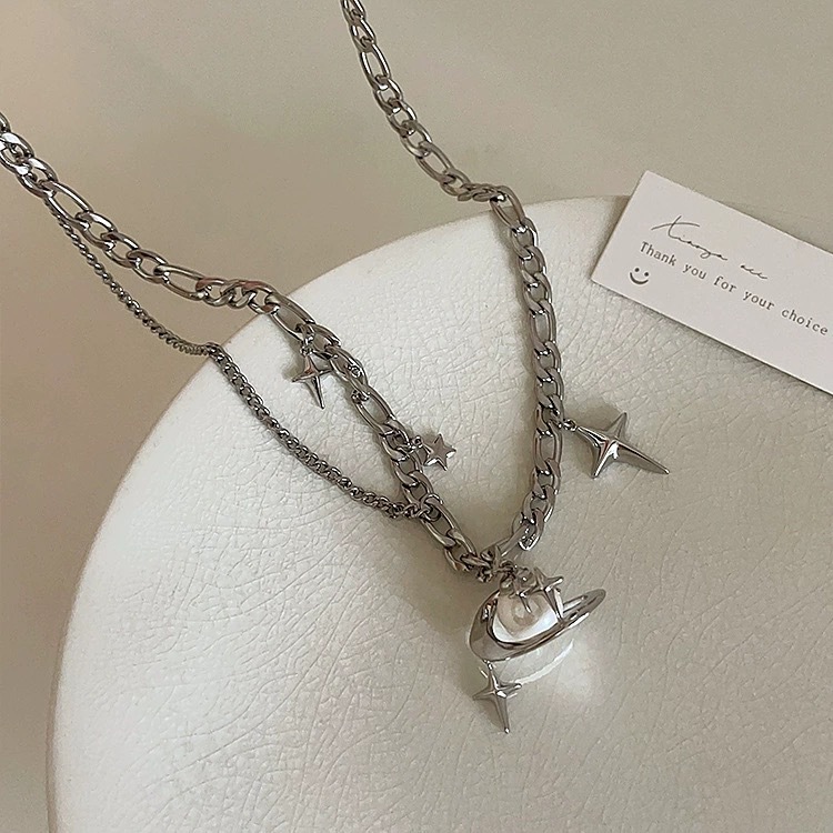 Korean style online celebrity girls' double-layer moon pendant necklace collar niche design fashion necklace in stock wholesale