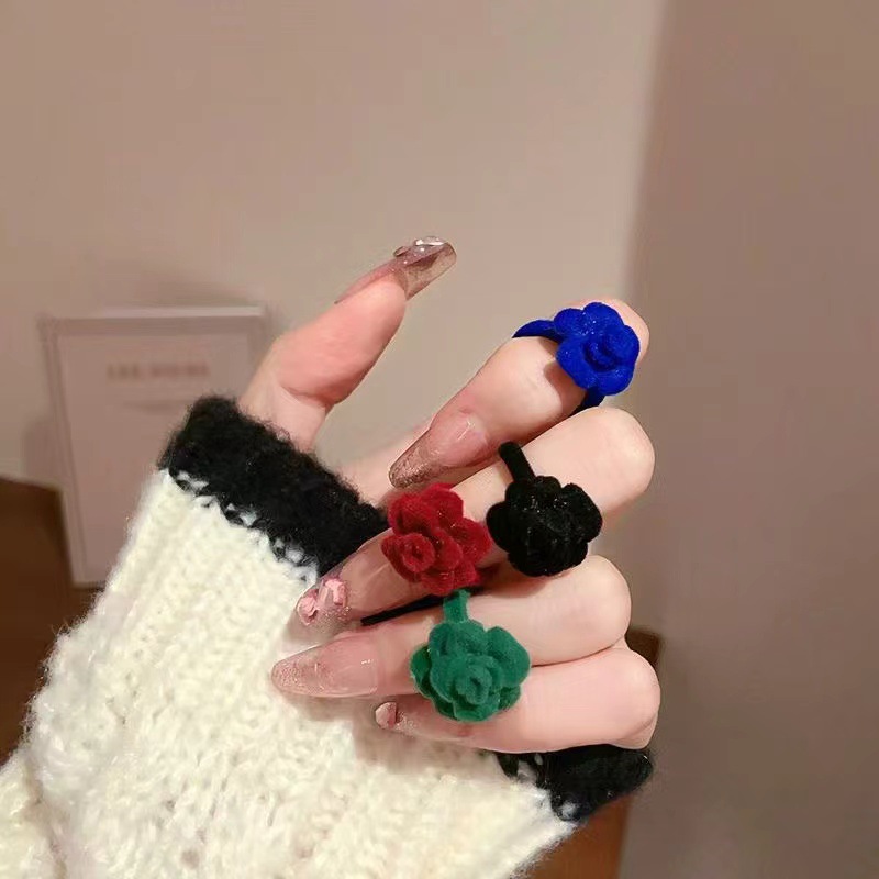 Autumn and Winter Flocked Flower Open Rings for Women, Ins Design, Niche Internet Celebrity Style, Wholesale Vintage Exquisite Ins Style
