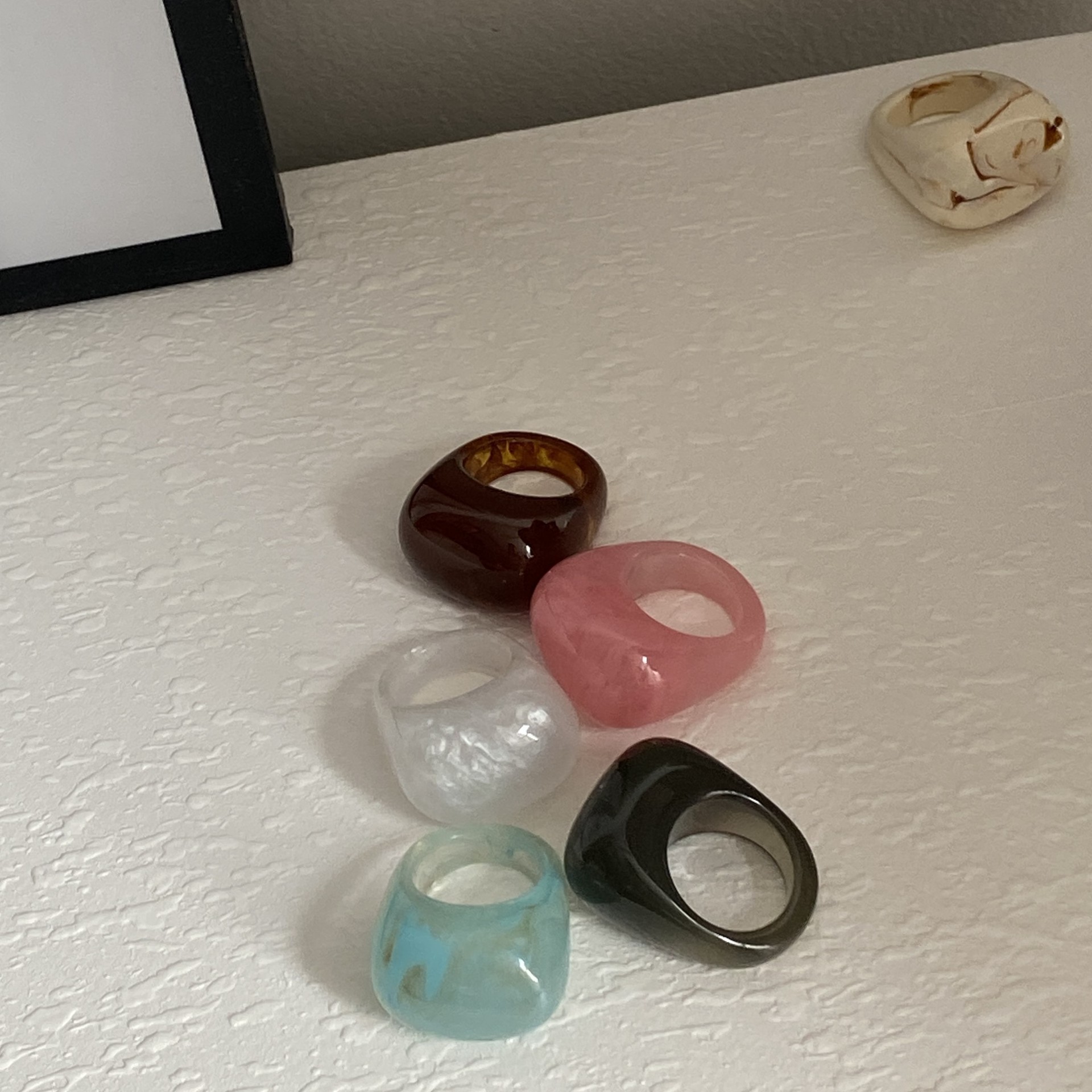 European and American Cross-Border New Style Personalized Aliexpress Resin Women's Ring Resin Ins Dongdaemun Elegant Resin Ring
