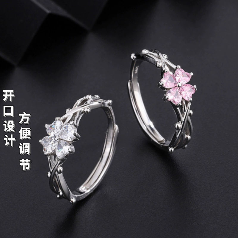 Four-leaf Clover Ring Women's Ins Niche Diamond-encrusted Korean-style High-grade Zircon Ring Light Luxury All-match Finger Ring Wholesale