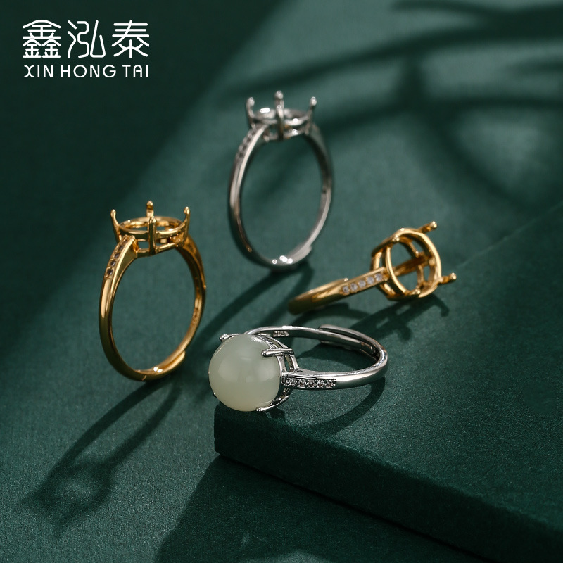 Ring empty support female ins fashion personalized open ring diy inlaid beeswax Jade round ring support empty support