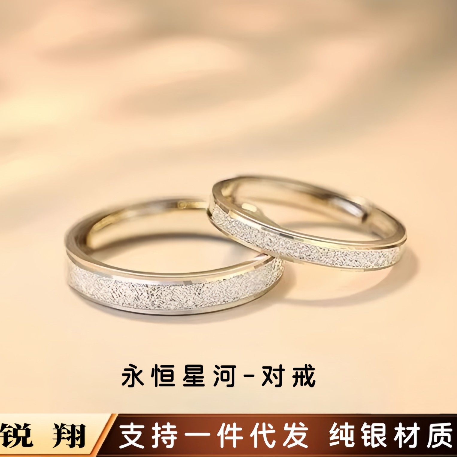 S999 Sterling Silver Romantic Galaxy Couple Ring Scrub Ring for Men and Women A Pair of Silver Plain Ring Niche Ring Wholesale