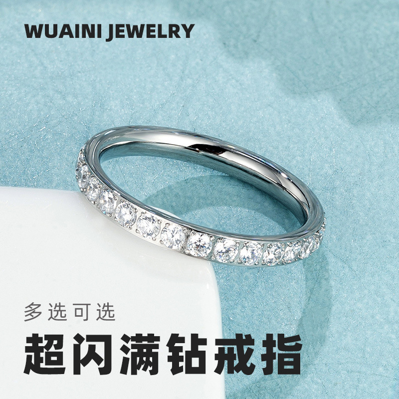 Super Flash Full Diamond Zircon Ring Ring Electroplated 18K Lap with Niche Ring Female Titanium Steel High Color Preservation Accessories Wholesale