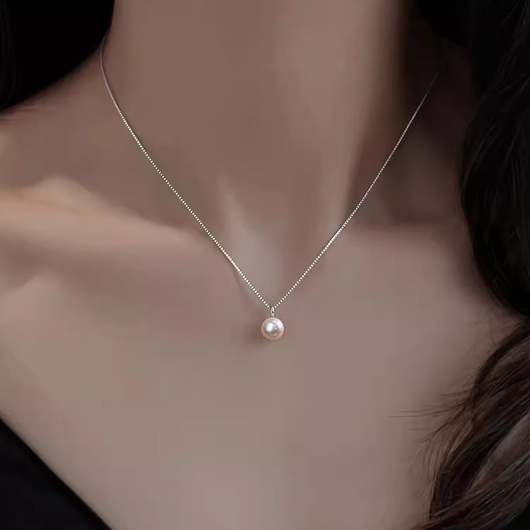 S925 Sterling Silver Natural Freshwater Single Pearl Pendant Necklace Light Luxury Clavicle Chain New Niche Women's Necklace Accessories