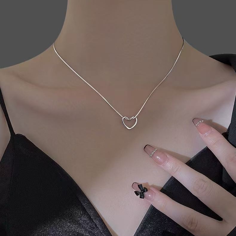 Casual and Fashionable Heart Cut Out Necklace, High-End Niche Design, Versatile Ins Style Clavicle Chain Accessories for Women