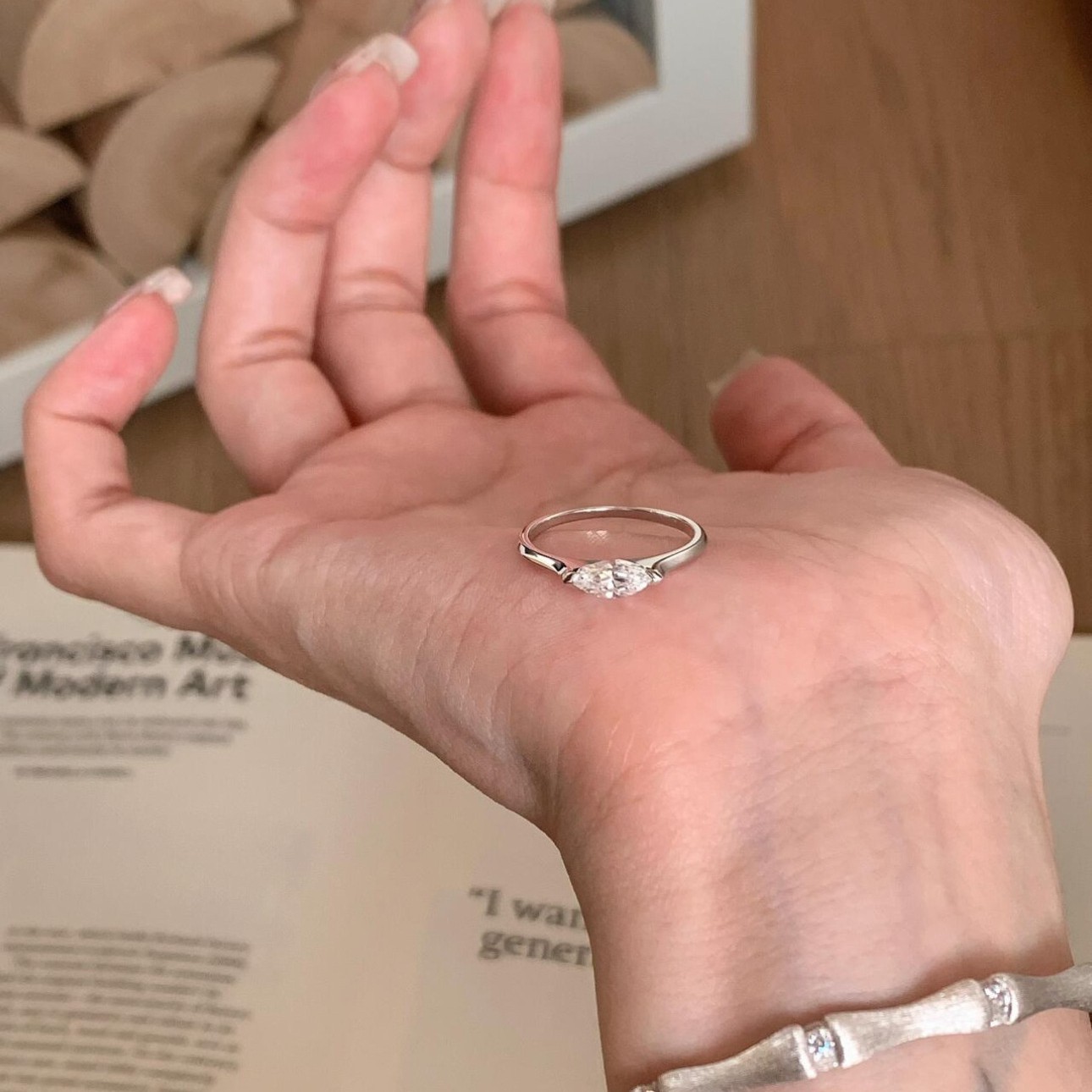 New Shaped Horse Eye Diamond Ring for Women's Niche Design Open Ring Simple All-match High-end Gifts for Girlfriend