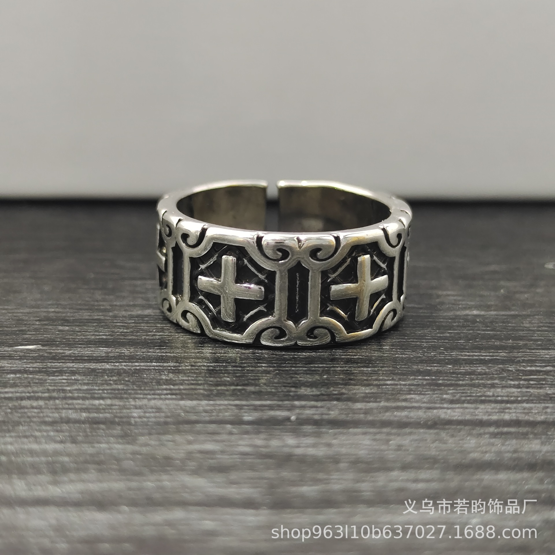 Retro Cross Ring Men's Trendyy Hip-Hop Punk Style Imitation Thai Silver Boys' Open Ring Fashion Personalized Jewelry