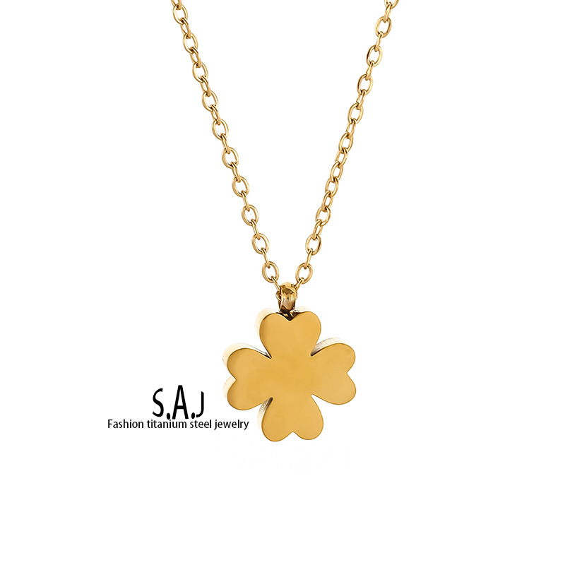 18K four-leaf clover titanium steel necklace 2024 new women's light luxury niche design sense high clavicle chain accessories