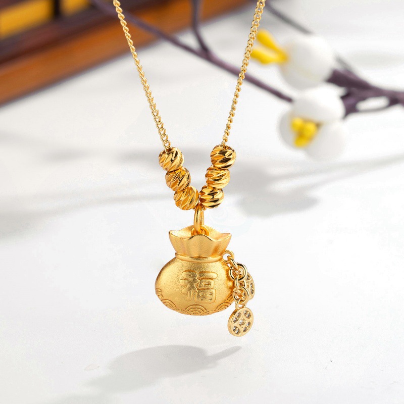 Treasure Lucky Bag Pendant Necklace 2024 New Fashion Niche Design Micro-Inlaid Zirconia Fortune-Attracting Clavicle Chain